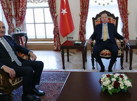 Cumhurbaşkanı Erdoğan, TBMM Başkanı Numan Kurtulmuş’u Dolmabahçe Çalışma Ofisi’nde kabul etti.