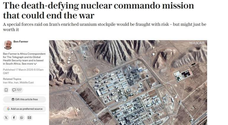 The Telegraph’ın “Savaşı sona erdirebilecek ölüme meydan okuyan nükleer komando görevi” başlıklı haberine göre, ABD Başkanı Trump ile İsrail Başbakanı Binyamin Netanyahu’nun iddialı bir planı değerlendirdiği bildirildi. İki liderin, İran’ın zenginleştirilmiş uranyum stokunu ele geçirmek amacıyla sahaya özel kuvvet konuşlandırmayı değerlendirdiği ifade edildi.